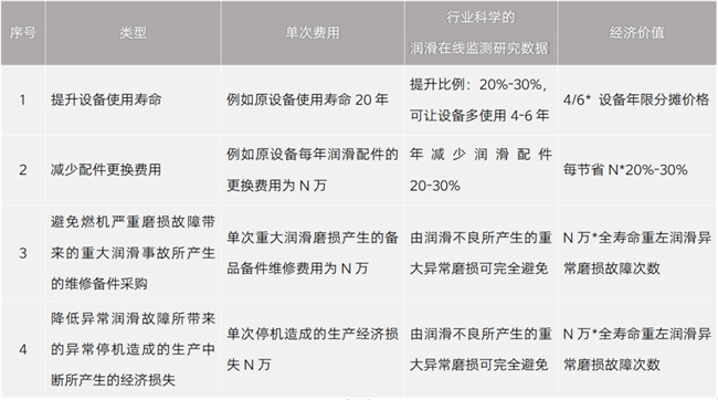 避免燃機嚴重磨損故障帶來的重大潤滑事故所產生的維修備件采購,降低異常潤滑故障所帶來的異常停機造成的生產中斷所產生的經濟損失。