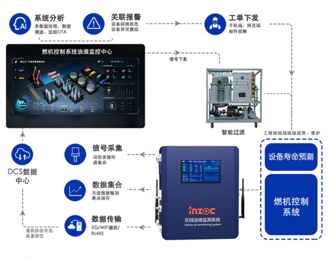 為了解決這一問題,INZOC智火柴憑借深厚的行業經驗和強大的技術實力,研發出的這一套適用于電廠燃機控制油的油質在線監測系統。