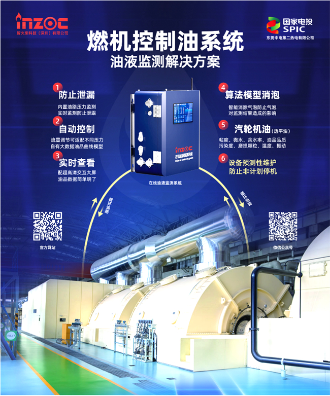 《一套適用于電廠燃機控制油的油質在線監測系統》是智火柴團隊在電廠燃機控制油質量在線監測領域取得的一項重要成果。延伸閱讀:電力能源設備油液狀態解決方案