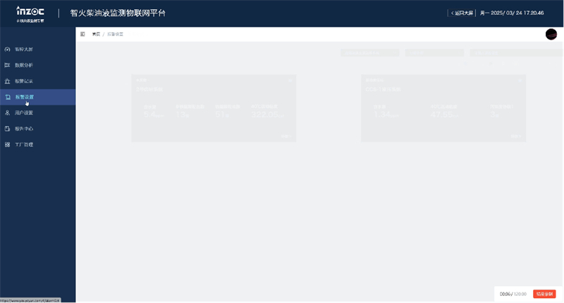 ■ 警報記錄與設置:在報 警記錄模塊可以查看設備歷史報 警信息。進入報 警設置頁面可以根據不同監測指標設置觸發條件,設定上下限觸發規則,異常波動先觸發二級報 警、數據發生異常觸發一級報 警,支持微信、信息、郵件等多通道預警。