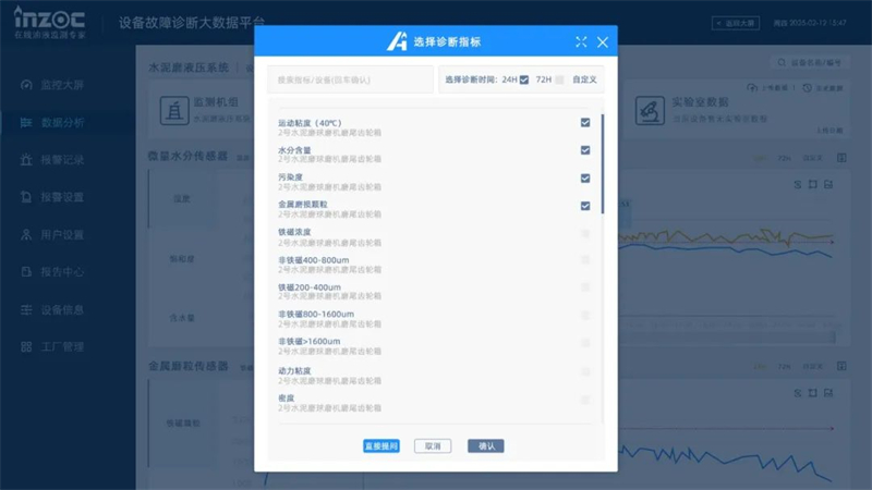■ 篩選指標:自 由選擇振動、粘度、水分含量、金屬顆粒濃度等關鍵參數;