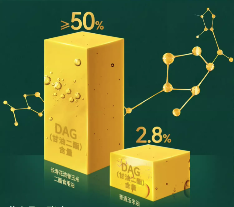 二酯食用油替換傳統食用油,是順應健康趨勢的新選擇。二酯油的品質取決于食用油中甘油二酯的含量,占比越高,更具健康屬性。長壽花DAG二酯食用油,在風味方面與傳統食用油相同,不需要改變飲食習慣,就能降低傳統食用油中“甘油三酯”帶來的健康風險,滿足大家的健康需求,是更具價值的健康選擇!
